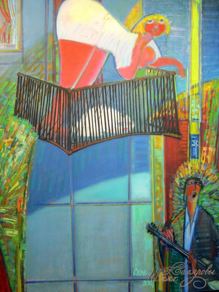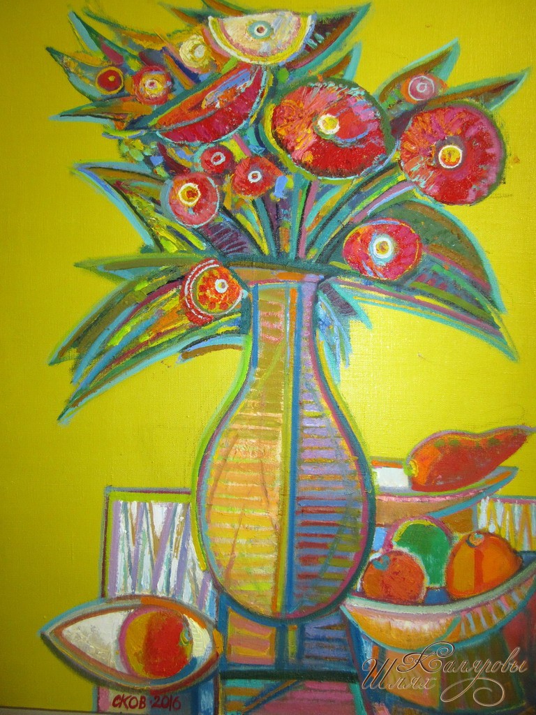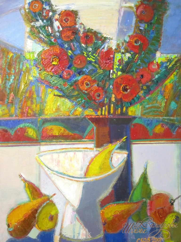 «Витебский живописец Олег Сковородко - уверенный и энергичный мастер с собственным творческим почерком и взглядом на мир, работы которого отмечены буйством сочных красок, напряженной и формально построенной композицией, живой связью с природой. Возле его полотен не перестаешь согреваться. В них есть теплота и искренность, внимание к извечным проблемам человеческого существования. Художник исследует жизнь вокруг себя: рисует деревни с архаическими деревянными домами, имеющими традиционные простые формы; огромные тотемные деревья, над которыми расстилаются белые скатерти-облака; панорамные пейзажи, окрашенные нежными цветовыми сочетаниями; натюрморты с классическими атрибутами вещественного мира, среди которых цветы, овощи, фрукты, зелень, керамика... Его работы отличает фактурность, материальность, формальная стилизация, образный символизм. Олег Сковородко не жалеет звучных аккордов, отрицает серость, спокойствие, вялость. Но не преувеличивает контрастность цветовых сочетаний, смягчает напряжение полутонами, тенями. При этом уверенно и смело обобщает форму. Не приспосабливается к вкусам покупателей и требованиям рынка. Главным для него всегда было и остается стремление выразить любовь к близким ему людям и родному краю..» Наталья Шарангович, искусствовед.