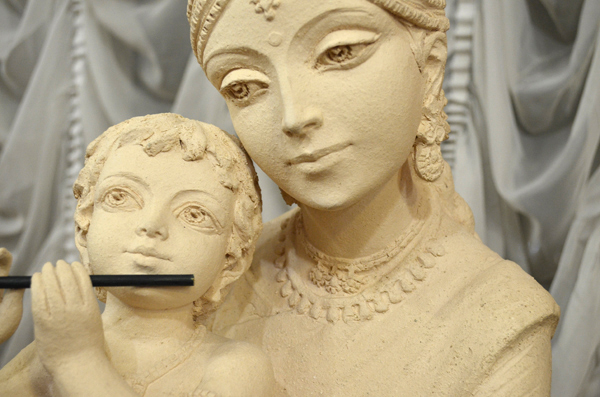 «Ваши скульптуры живые, они дышат», – эти слова художник часто слышит от восхищенных зрителей. Работы, представленные на выставке являются зримым воплощением истины «Бог есть любовь», и кажется, что они светятся от наполняющего их глубокого чувства. Мастер не идет путем канона, его молитва, воплощенная в скульптуре, – это именно собственный духовный порыв. Произведения выполнены в технике шамота, которая придаёт образам особую мягкость и пластичность.